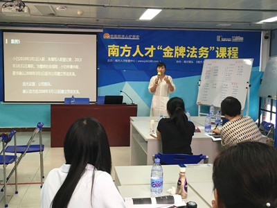 2018年7月12日下午,南方人才“金牌法务”课程第一期在南方人才精典大厦七楼开讲啦!课程的主办方是南方人才配置中心,协办方是南方猎头、《南方人才杂志》以及广东杰海律师事务所。“金牌法务”系列课程的主讲律师是广东杰海律师事务所的唐秀琼律师,第一期课程培训主题是招聘与入职阶段法律风险防控。