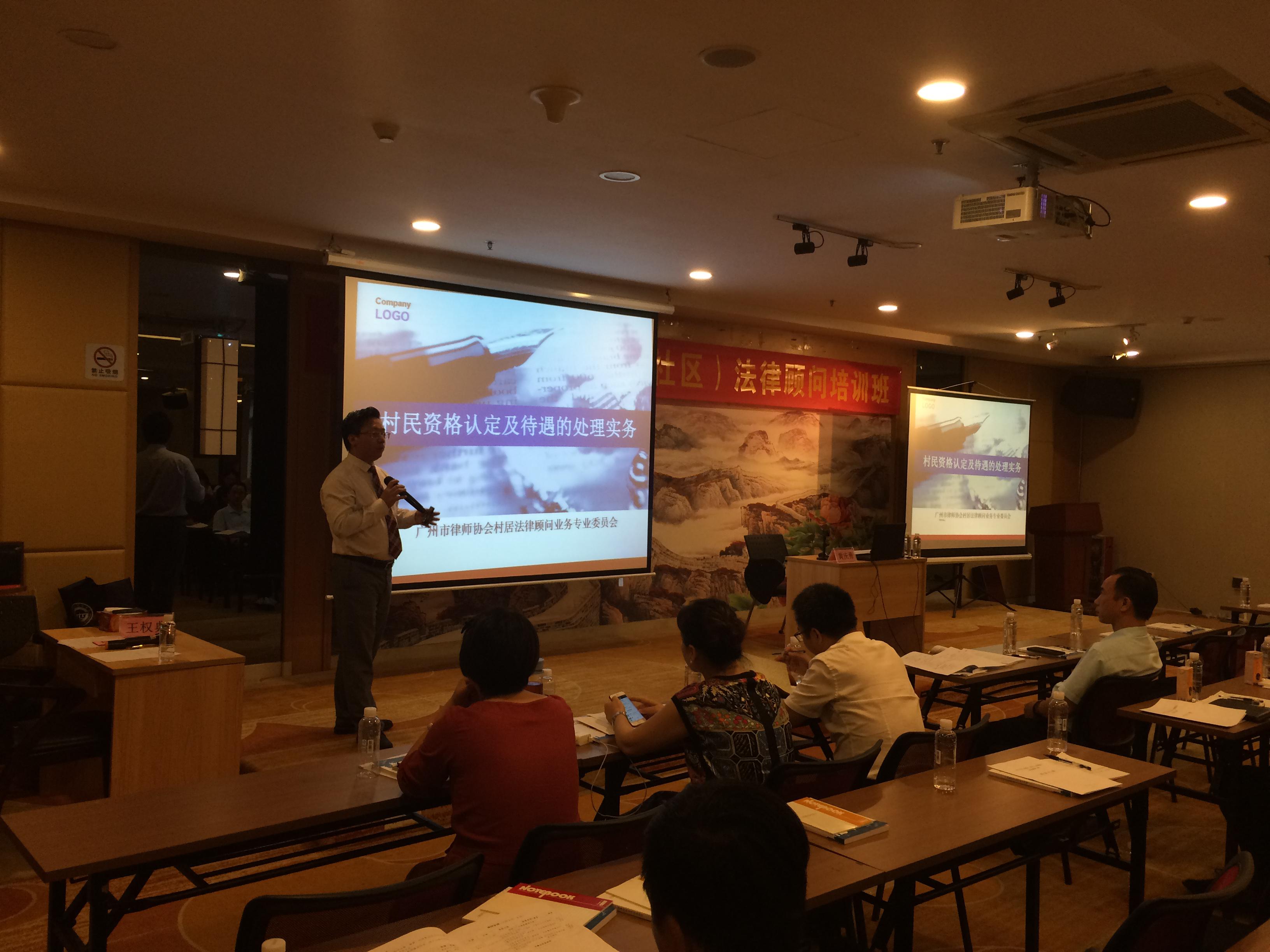 2018年7月7日和7月8日,由广州市司法局律管处主办的2018年广州市村(社区)法律顾问培训班(第二期,第三期)在广州大学律师学院举行,广东杰海律师事务所副主任黄庆勇律师就村民资格认定及待遇纠纷处理实务问题向村居法律顾问律师进行授课。