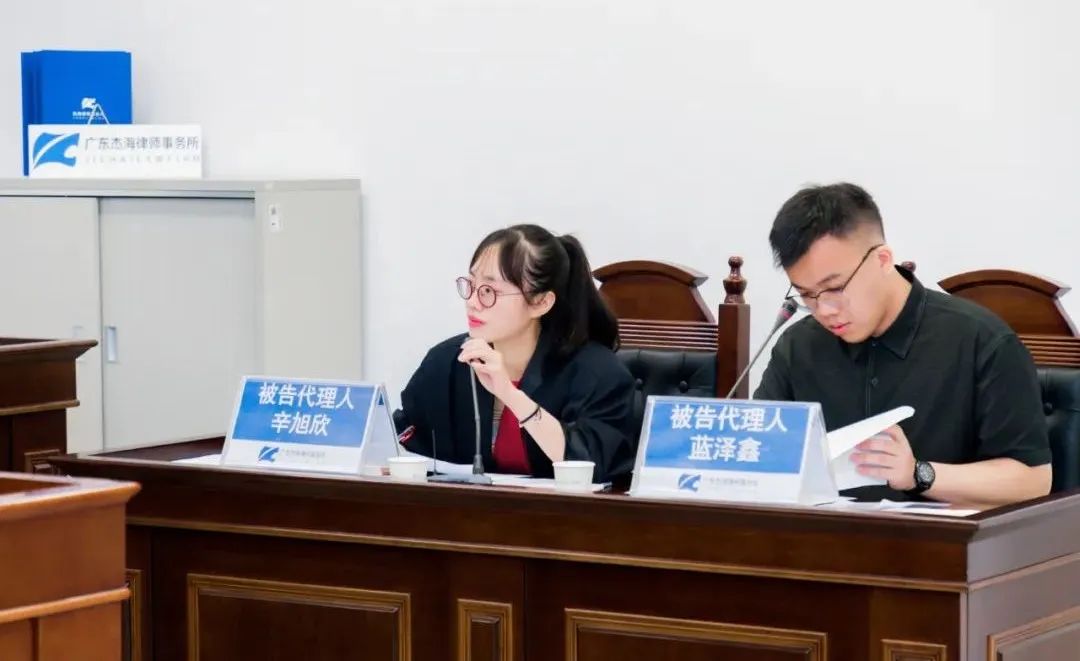 该组由杰海南沙分所的洪泽铨实习人员、戴霭谊实习人员对阵总所辛旭欣实习人员、蓝泽鑫实习人员,两组选手凭借着充足的庭前准备,即使面对法官的施压也毫不怯场的表现,赢得了一众评委的点赞。